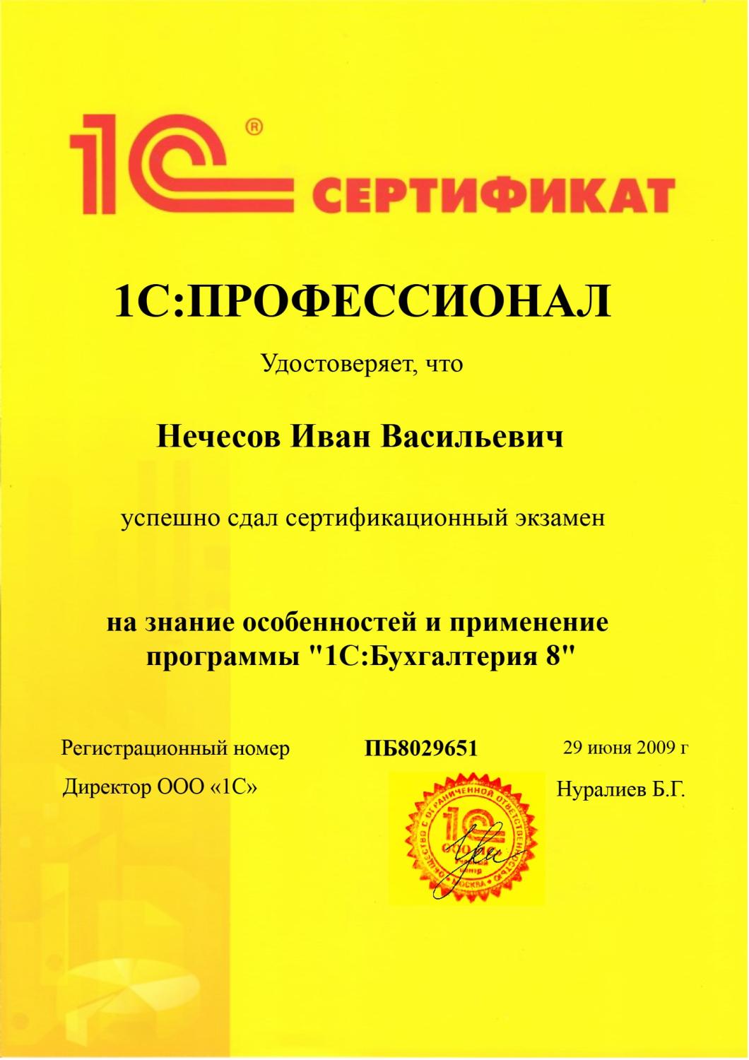 Свидетельство о прохождении курса «Специалист-Консультант по 1С:Бухгалтерии»