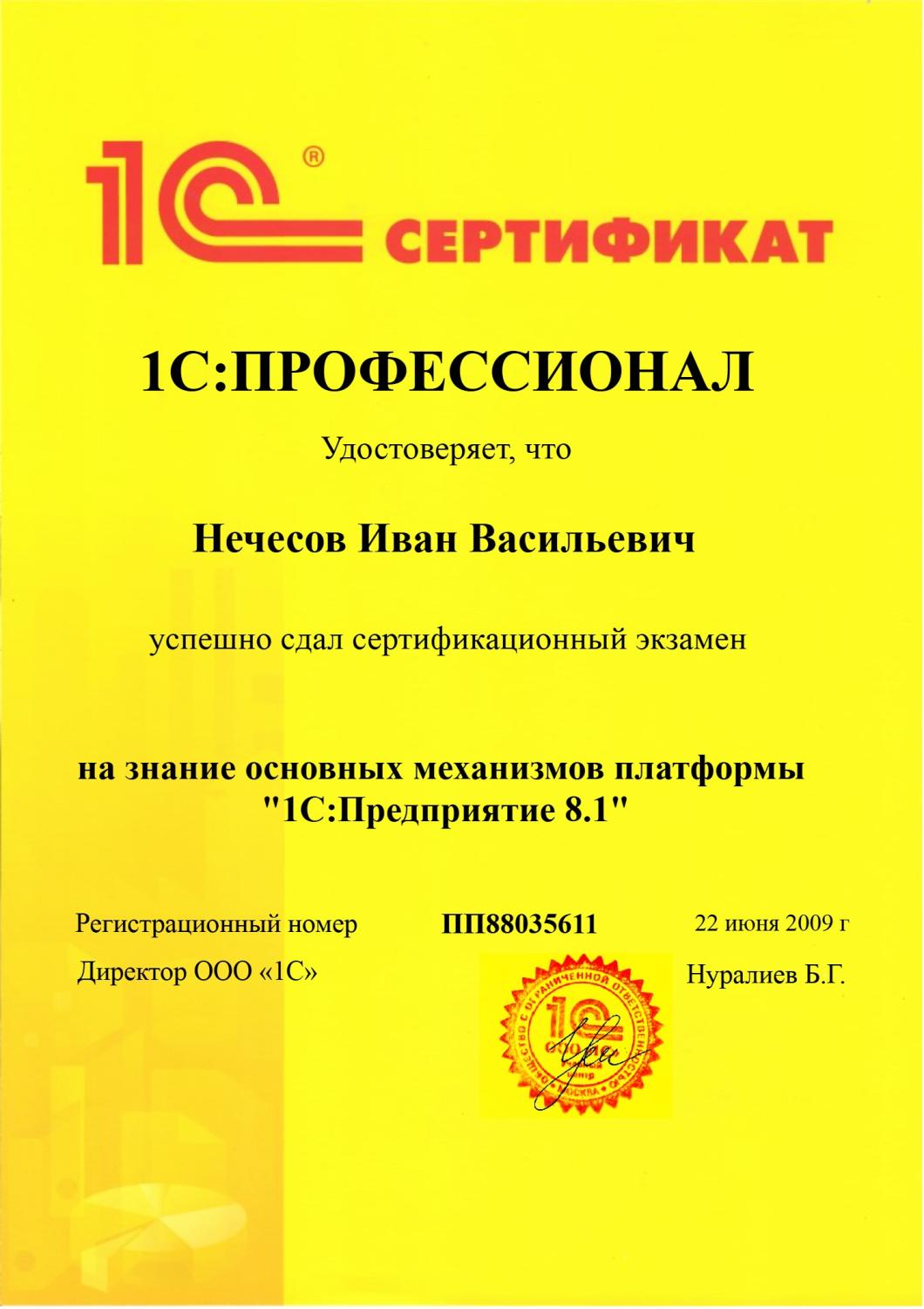 1С:Профессионал по конфигурации 1С:Управление нашей фирмой