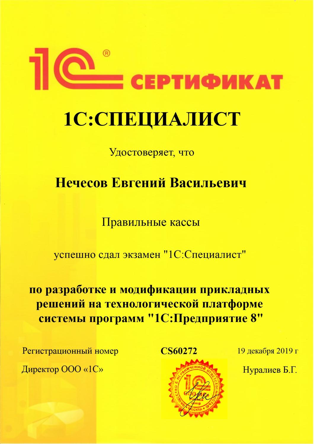 1С:Специалист по разработке и модификации прикладных решений на Платформе 1С 8.х